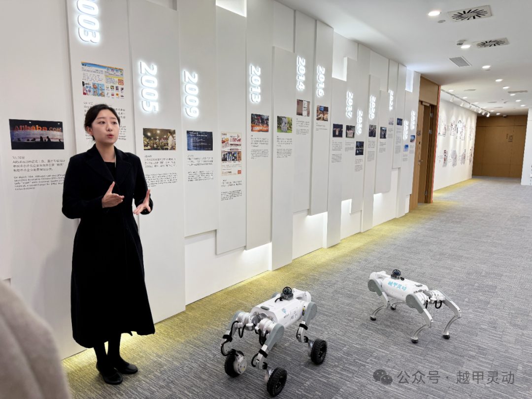 今日,越甲灵动(深圳)科技有限公司CEO刘亮率队到访阿里巴巴园区,并携带公司自主研发的“越甲灵动”四足机器狗进行实地展示与交流。此次访问旨在探索前沿机器人技术与商业生态的融合路径,进一步推动具身智能在多元化场景中的落地应用。